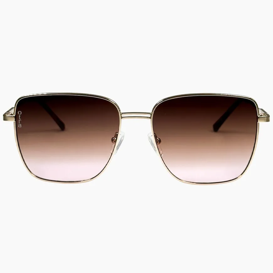 Rita er en elegant squared metallbrille i gull som kombinerer et moderne uttrykk med tidløs stil. De gradient brun-til-rosa glassene gir et mykt og sofistikert preg, perfekt for både hverdagsbruk og spesielle anledninger. Den lette metallrammen sikrer en komfortabel passform, mens 100 % UV-beskyttelse sørger for optimal øyebeskyttelse.
