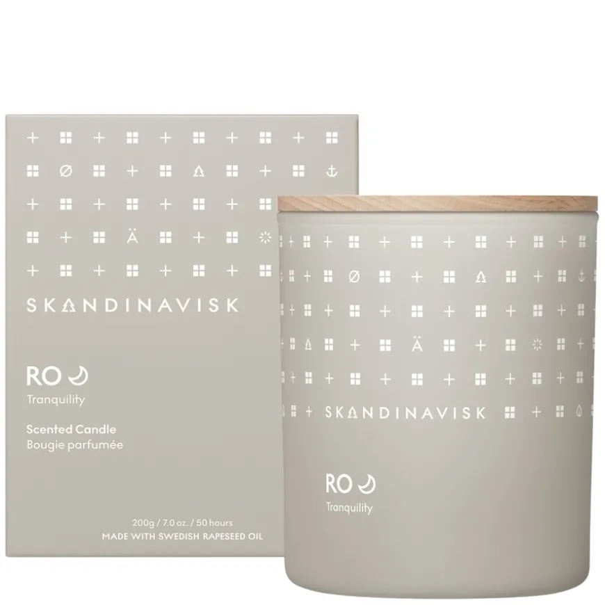 Skandinavisk RO Scented Candle med voks fra svensk rapsolje, som er bærekraftig dyrket og ikke-GMO, og blandet for å brenne jevnt og sakte med minimal miljøpåvirkning. Vegansk og ikke testet på dyr.