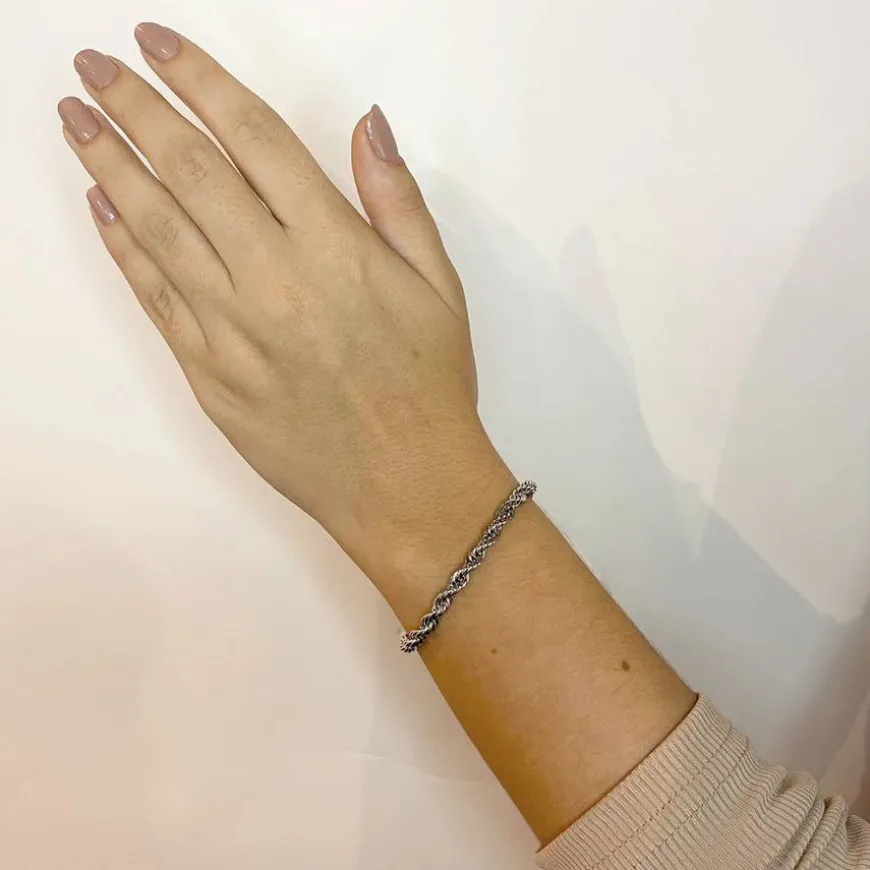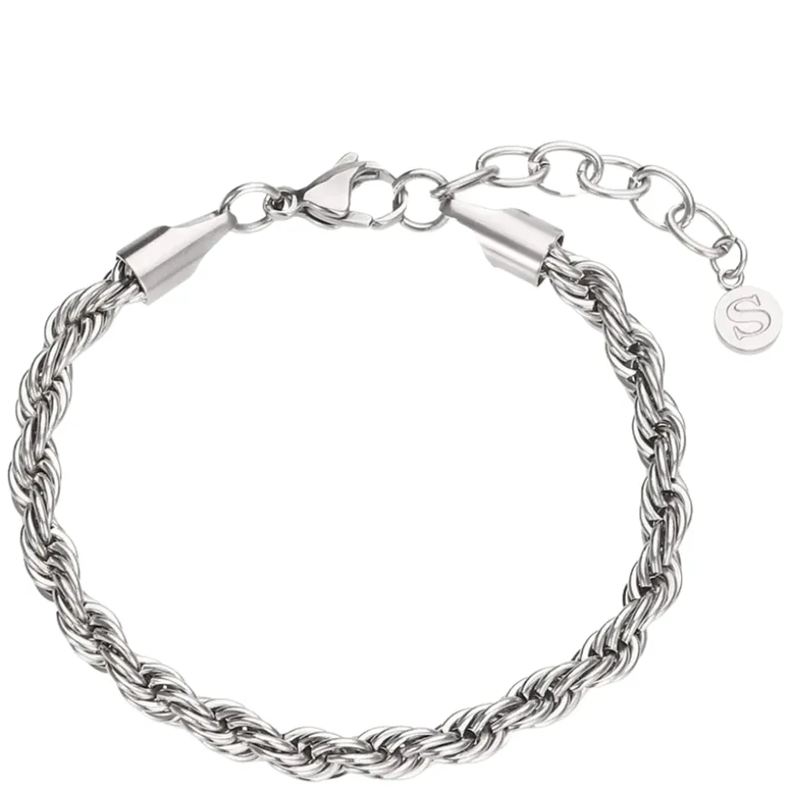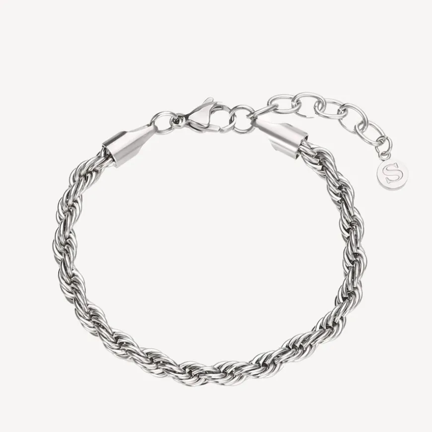 Rope Bracelet i rustfritt stål, designet med et rundt tau-look som gir et kult og klassisk uttrykk. Perfekt for både hverdagsbruk og fest.
