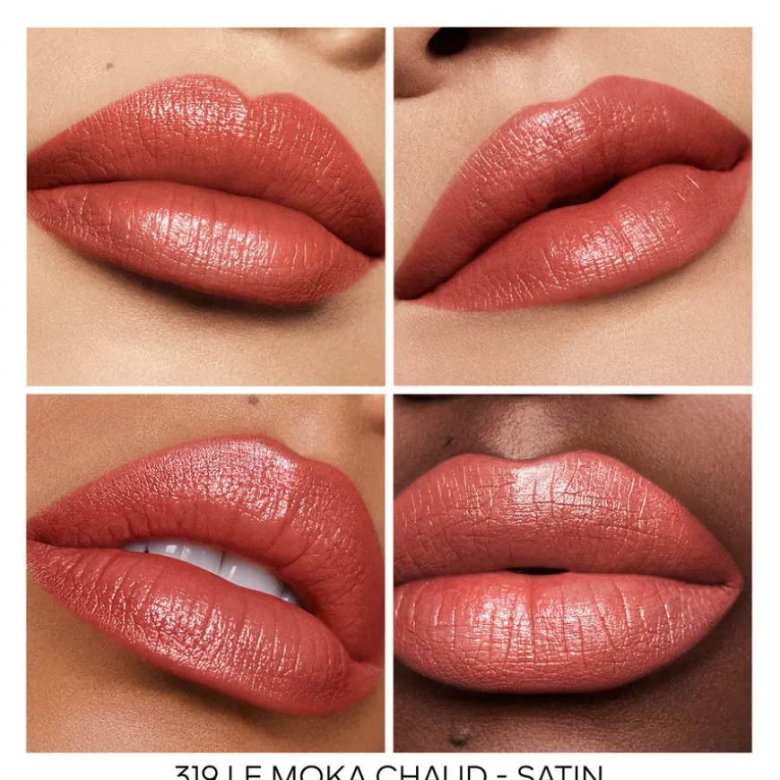 ¹Gjennomsnittlig prosentandel hudpleiebase, unntatt pigmenter og shimmer, i Rouge G-serien: Rouge G Velvet – minimum 81 %, Rouge G Satin – minimum 89 %.