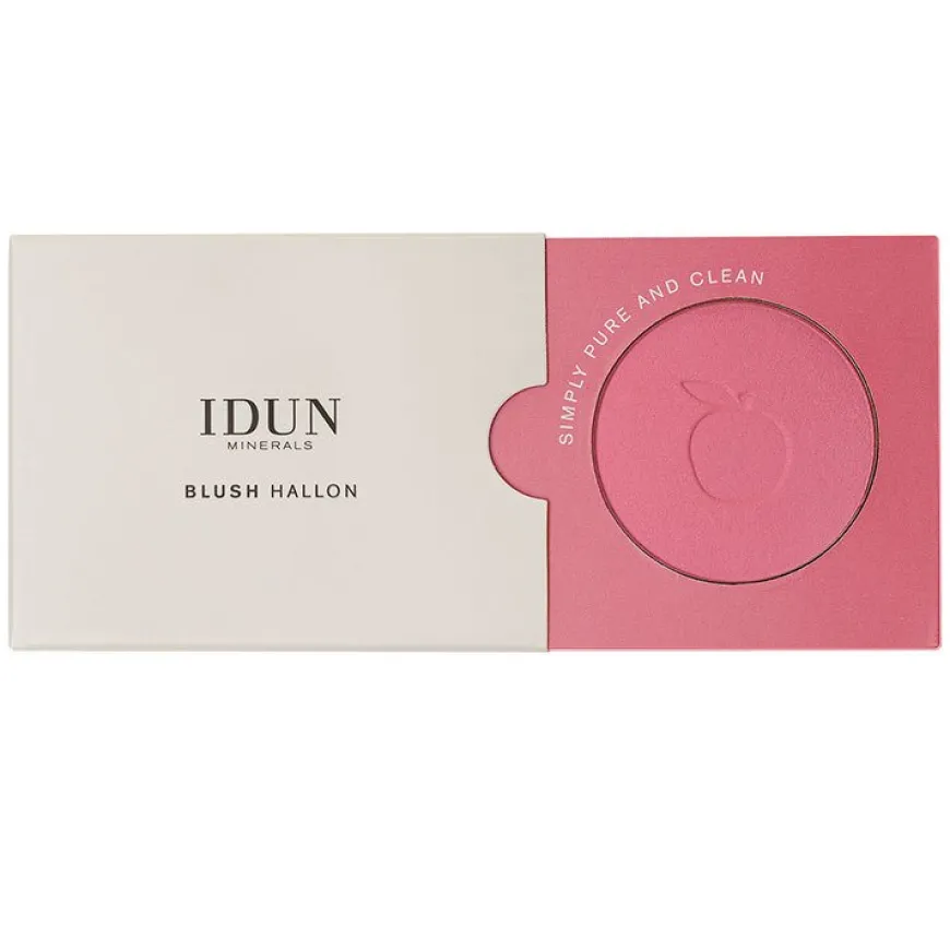 IDUN Minerals Rouge er en lett og pigmentert rouge som gir kinnene en naturlig og frisk farge. Rougen gir ansiktet glød og friskhet. Fargen Hallon har en nydelig dyp rosa farge.
