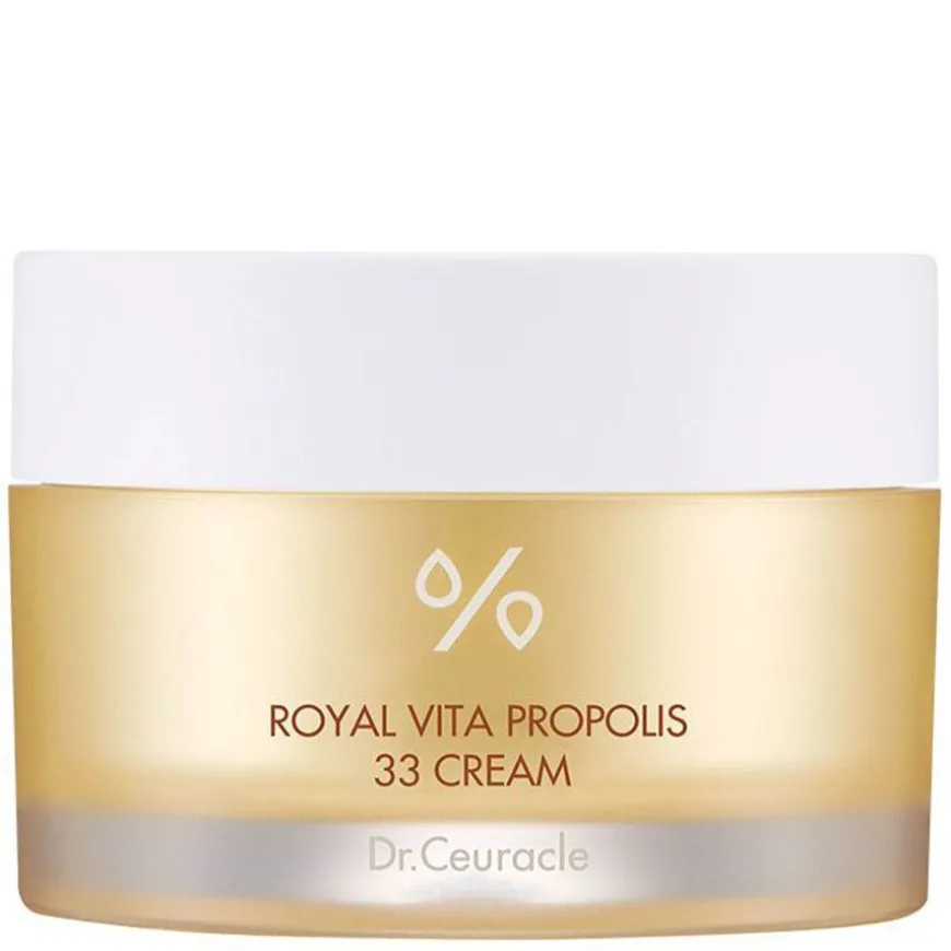 Royal Vita Propolis 33 Cream er en fuktighetskrem som inneholder Royal Jelly Extract (bidronninggelé) som tilfører huden naturlig kollagen som bygger opp hudens bindevev og gir spenst. Den honninglignende formelen gir langvarig og dyp fuktighet og næring til huden samtidig som den styrker hudens fuktbarriere. Den perfekte energiboosteren for trett og tørr hud! Den inneholder 33 % ren propolis, som er naturlig reparerende og gir næring til trist og trett hud.