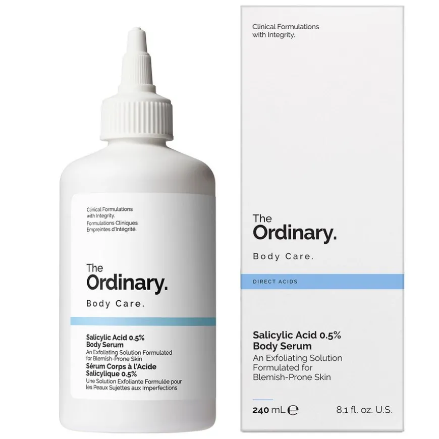 Salicylic Acid 0.5% Body Serum er utviklet for hud som er utsatt for urenheter, for å korrigere strukturelle uregelmessigheter og gi en klarere og glattere hud. Formelen gir overflateeksfoliering ved hjelp av 0,5 % salisylsyre, som bidrar til å fremme den naturlige avskallingen av død hud. Salisylsyre er blant annet lipofil, noe som betyr at den kan eksfoliere og bidra til å rense huden for smuss og rester som kan blokkere porene, og dermed bidra til å minimere tilstoppede porer.