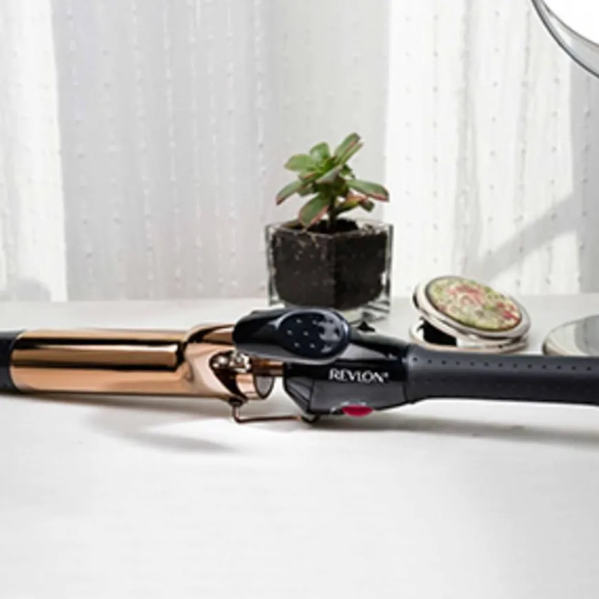 Salon Long-Lasting Curls And Waves Rose Gold Curling Iron er en krølltang som er perfekt for å skape store krøller og bølger. Krølltangen har Rose Gold-teknologi som kombinerer gull og kobber for den ultimate stylingoverflate. Høy varme fra rose gold-sylinderen låser krøllene for mer langvarige frisyrer.