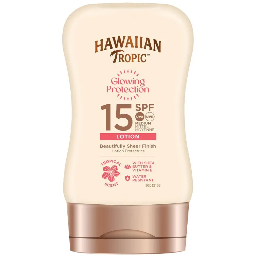 Opplev det beste av sommeren og gi huden din den ultimate beskyttelsen med Hawaiian Tropic Glowing Protection Lotion. Nyt den rene finishen, beriket med sheasmør og vitamin E, som pleier huden din og etterlater den myk som fløyel. Med sin vannavstøtende formel kan du nyte hvert øyeblikk på stranden mens du trygt bygger opp brunfargen. Skap uforglemmelige minner mens du blir revet med av den tropiske duften. Med hver påføring etterlater den huden din myk, beskyttet og skinnende. Praktisk reiseemballasje.