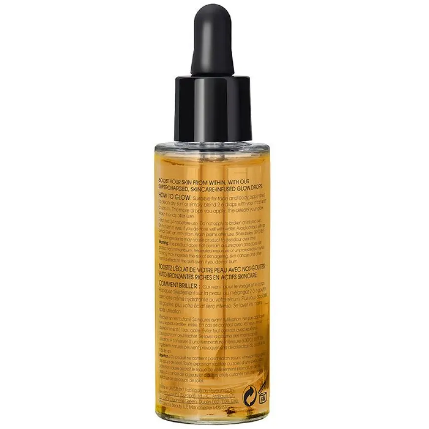 Self Tan Tonic Drops er St.Tropez nye5 i 1 Glow Drops med hudpleiefordeler som lar deg tilpasse gløden din samtidig som den bidrar til å plumpe, jevne ut fine linjer og gi deg en fantastisk glød. Selvbruningen kanpåføres direkte på huden eller blandes sammen med fuktighetskremen din på dagtid eller på natten. Flere dråper gir en dypere farge.