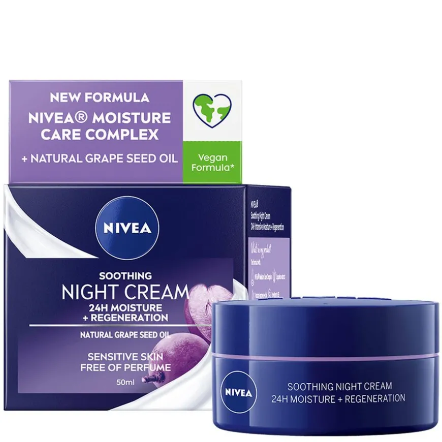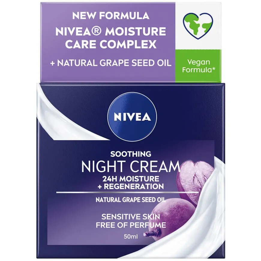 Soothing Night Cream er en beroligende nattkrem med naturlig druefrøolje, lakrisekstrakt og provitamin B5 som fukter huden din mens den støtter hudens naturlige motstand mot hudirritasjon om natten. Reduserer rødhet, stramhet og tørrhet. Fukter huden i opptil 24 timer. Vegansk produkt, uten animalske ingredienser.