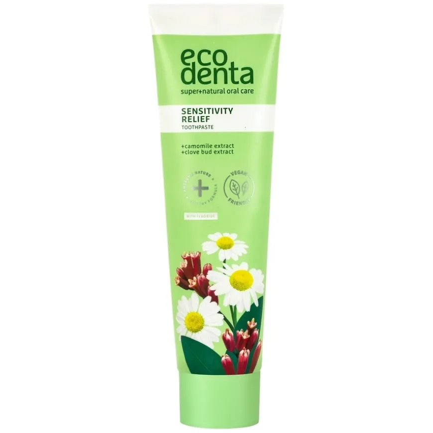 Sensitivity Relief Toothpaste gir skånsom, men effektiv pleie for sensitive tenner og tannkjøtt. Den fjerner plakk og matrester samtidig som den beskytter tannkjøttet og slimhinnene i munnen. Formelen bidrar til å forhindre oppbygging av tannstein og gir en følelse av renslighet og friskhet. Inneholder fluor for å styrke emaljen og redusere risikoen for karies.