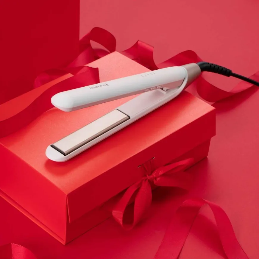 Remington Shea Soft Straightener er en rettetang med avansert keramisk belagte 110 mm plater som inneholder mikrobalsam med Shea-olje som gjør håret ditt naturlig mykt og skinnende. Med det digitale displayet kan du enkelt velge den temperaturen som passer håret ditt, velg mellom temperaturer fra 150°C opp til 230°C. Minnefunksjonen husker sist valgte temperatur og har spenningsjustering for hele verden.