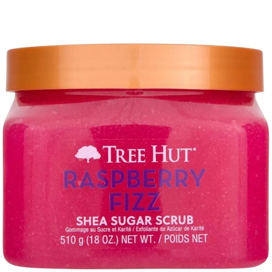 Tree Hut Shea Sugar Scrub Raspberry Fizz er en skånsom, men effektiv sukkerskrubb som gir huden en intens eksfoliering og etterlater den silkemyk og glødende. Sukkerkornene fjerner døde hudceller og tørr hud uten å virke irriterende. Den er beriket med fuktighetsgivende sheasmør, bringebærfrøolje og chiafrøolje, som gir dyp næring og tilfører huden en deilig duft av søte bringebær. Sheasmøret hjelper med å bevare fuktigheten, styrke hudbarrieren og øke hudens elastisitet. Skrubben er vegansk.