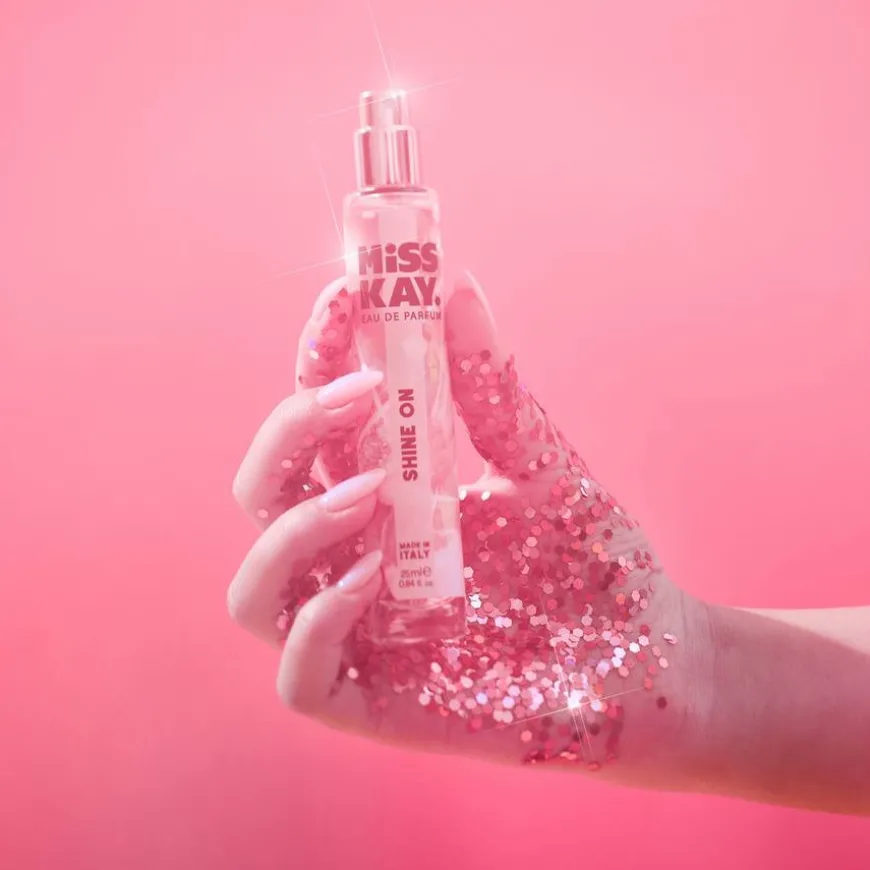 Shine On Eau de Parfum er en velduftende parfyme fra Miss Kay! Den har en duft som svinger mellom gardenia, hvit fersken, pære, jasmin sambac, oransjeblomster, tuberose, patchouli, vanilje, sandeltre og Kashmir.