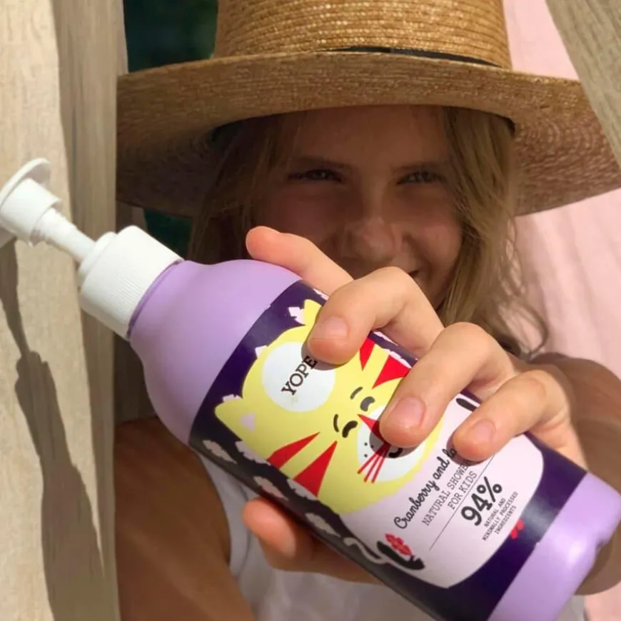 Shower Gel For Kids Cranberry And Lavender er en naturlig dusjgelé utviklet for barn over 3 år – og passer også for voksne med sensitiv hud. Denne milde dusjgelen rengjør skånsomt uten å tørke ut huden og etterlater den myk, fuktet og velduftende. Med en deilig og fruktig duft av tranebær og lavendel gjør den dusjen til en glede. Inneholder fuktighetsgivende og beroligende betaglukaner fra svenske havre samt naturlige vaskeaktive stoffer fra planter. Tranebærekstrakt er rik på vitaminer og mineraler som styrker og mykgjør huden, mens lavendelekstrakt virker beroligende og lindrende. Flasken er laget av resirkulert materiale og designet for å være morsom og innbydende – perfekt for små hender og nysgjerrige øyne.