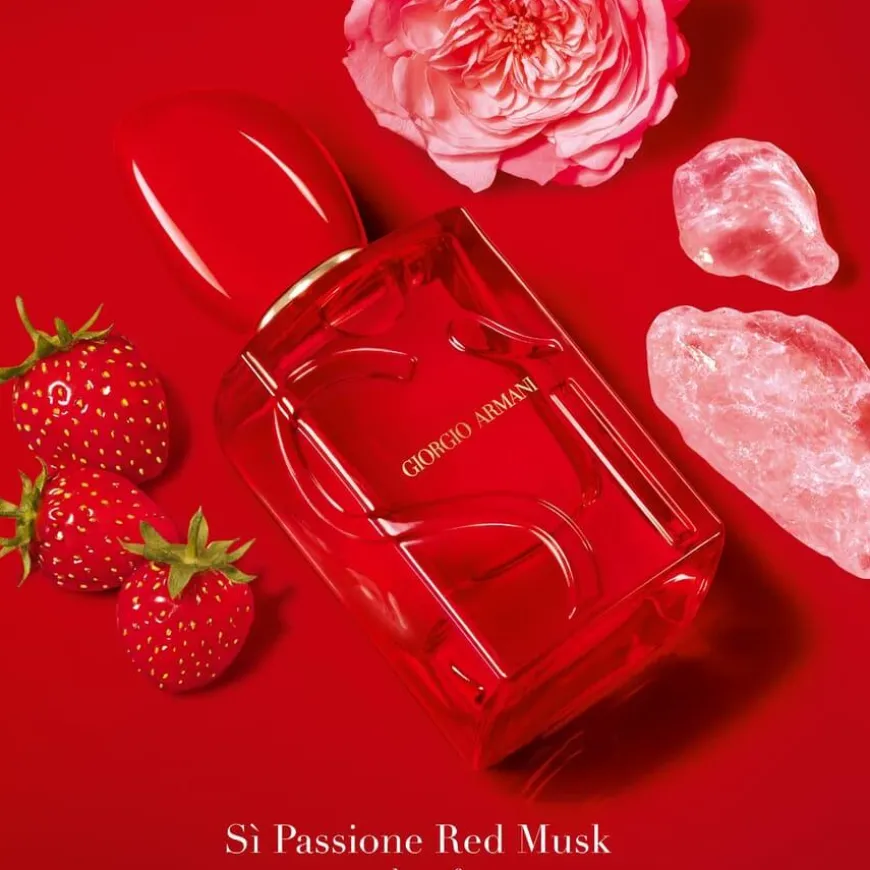 Sì Passione Eau De Parfum Red Musk fra Armani er en floral-amberaktig fruktig duft som feirer lidenskap og selvsikker femininitet. Dette er duften for kvinnen som følger sitt hjerte og lever livet fullt ut. Duften åpner med en saftig og naturlig jordbærekstrakt som straks vekker sansene, før den smelter sammen med et elegant og overdådig hjerte av roseabsolut. Den myke musken pulserer gjennom duftens struktur og utvikler seg til et sensuelt samspill med varme, beroligende noter og søt vanilje i basen. Resultatet er en dyp og magnetisk komposisjon som gjør inntrykk og varer lenge. Flasken er ikledd en levende og gjennomsiktig rød tone – en fargerik erklæring om lidenskap. Den elegante korken og den ikoniske Si-logoen gir flasken en smykkelignende kvalitet som gjør den både vakker og dristig. En moderne og intens duftopplevelse som får hjertet til å slå litt raskere.