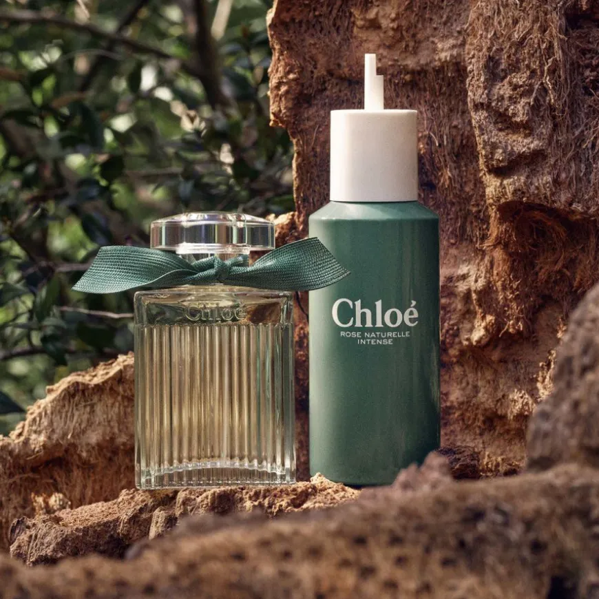 Chloé fortsetter arbeidet med å redusere klimaavtrykket sitt, så 25 % av glasset og 40 % av pappen til esken består nå av resirkulerte materialer. Den tidløse vintageflasken er inspirert av Chloés ikoniske crêpe de chine-bluse med den feminine knytesløyfen, og flasken er dekorert med en håndknyttet sløyfe i 100 % resirkulert materiale i en ny og sterk grønnfarge.