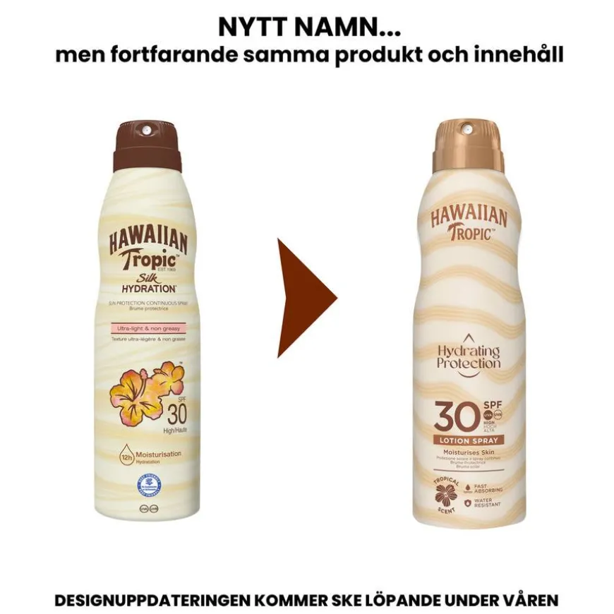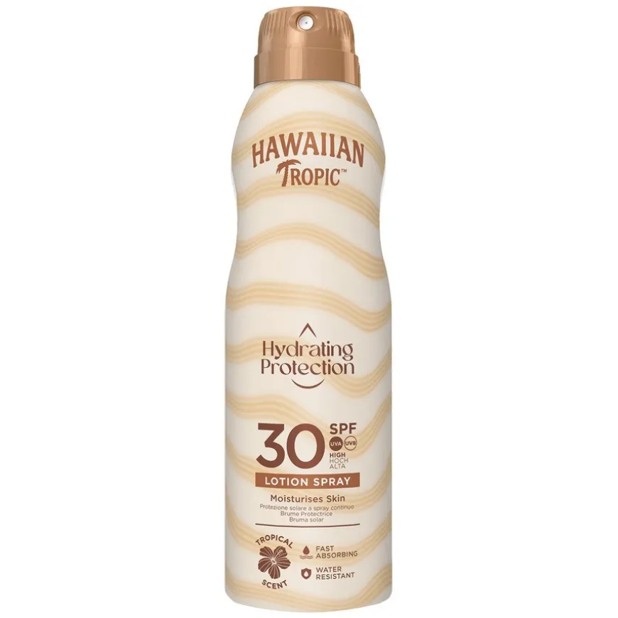 Møt din perfekte partner for solfylte eventyr med Hawaiian Tropics Hydrating Protection spraylotion. Med en praktisk spray fukter denne lotionen raskt huden samtidig som den er vannavstøtende. Med høy beskyttelse mot både UVA- og UVB-stråler og nærende ingredienser som mango, plumeria og guava, gir den huden din fuktighet og gir deg selvtillit til å virkelig nyte solen. Opplev en tropisk duft av sommer som lokker alle sansene dine.