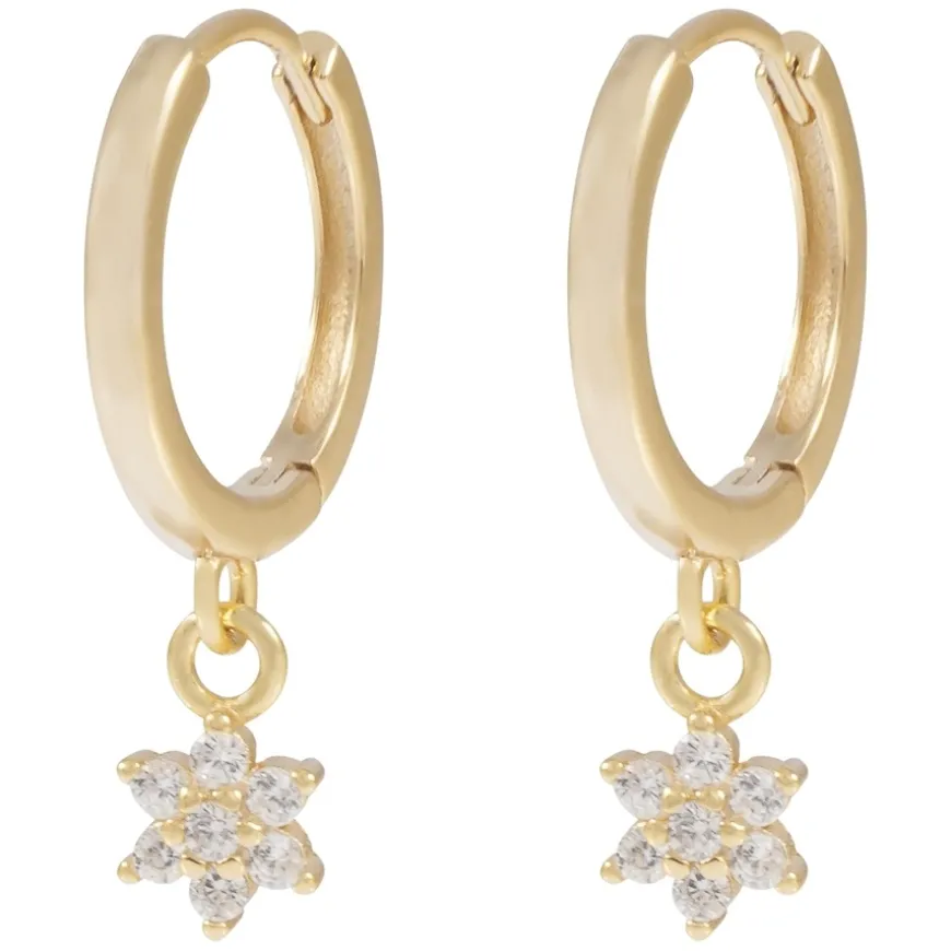 Siri Pendant Earring er små hoop-øredobber i gullbelagt messing fra Snö Of Sweden. Øredobbene har en gnistrende stjerneformet charm dekorert med zirkoniastener, som gir et feminint og glamorøst uttrykk. Perfekte både til hverdags og festlige anledninger. Designet kombinerer det lekne og elegante, og gir ethvert antrekk et subtilt, men iøynefallende løft. Passer alle som ønsker et enkelt smykke med stjernedetalj og glans.