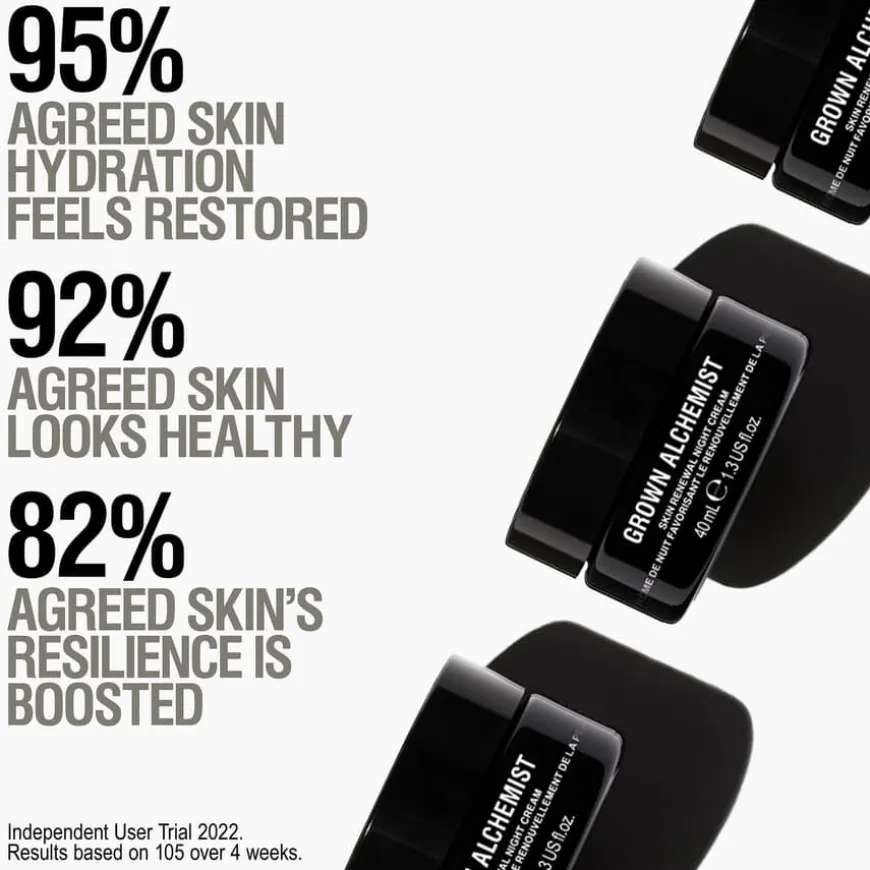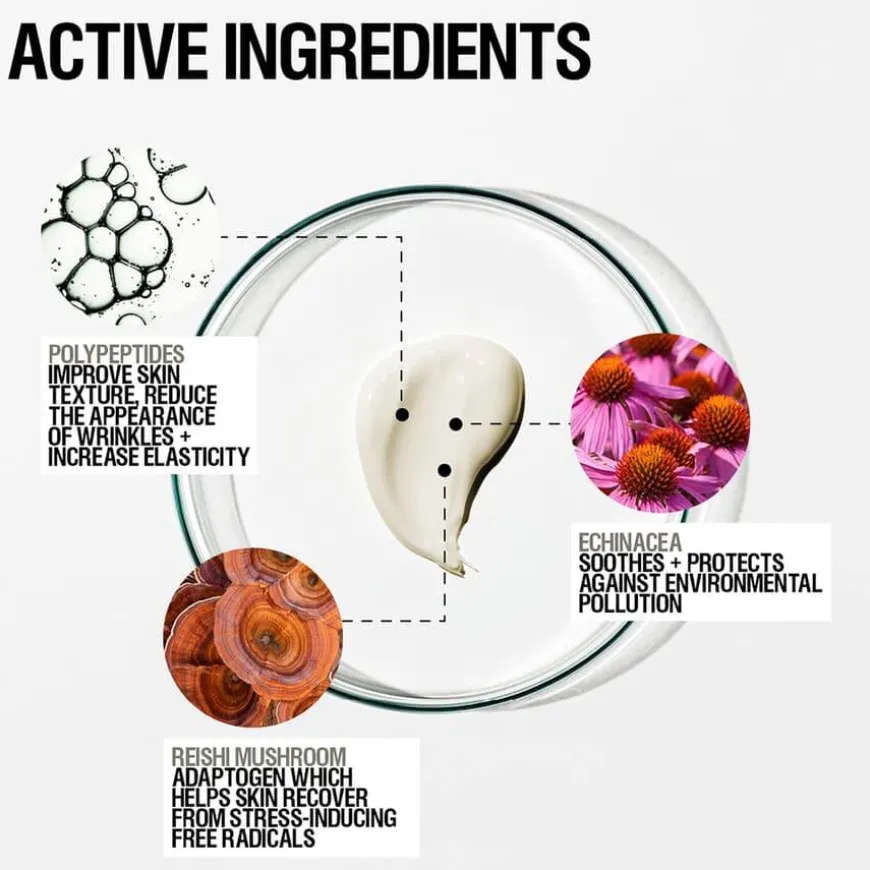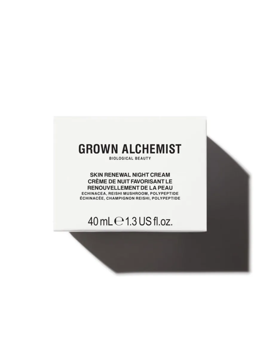 Skin Renewal Night Cream er en nærende nattkrem som er designet for å virke mens huden er i hvilemodus. Kremen fyller på og gjenoppretter hudens fuktighet over natten, for økt motstandskraft. Formulert med antioksidantrik Echinacea-ekstrakt, betennelseshemmende Reishi-sopp og plumpende Polypeptider. Når du våkner ser huden sunn, strålende og ungdommelig ut.