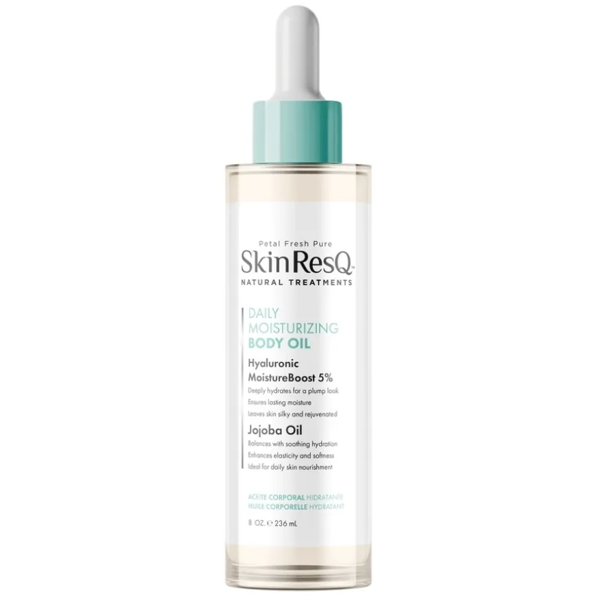 Skin ResQ Daily Moisturizing Body Oil er en fuktighetsgivende kroppsolje som tilfører intensiv næring til tørr og gusten hud. Den lette, hurtigabsorberende formelen inneholder 5 % Hyaluronic MoistureBoost og jojobaolje som balanserer hudens fuktighetsnivå og gir silkemyk finish. I tillegg bidrar macadamia- og druefrøolje til å styrke hudbarrieren og forbedre elastisiteten. Oljen er ideell for daglig bruk og passer perfekt til tørre partier som albuer, knær og hæler. Passer for alle hudtyper, også sensitiv hud.