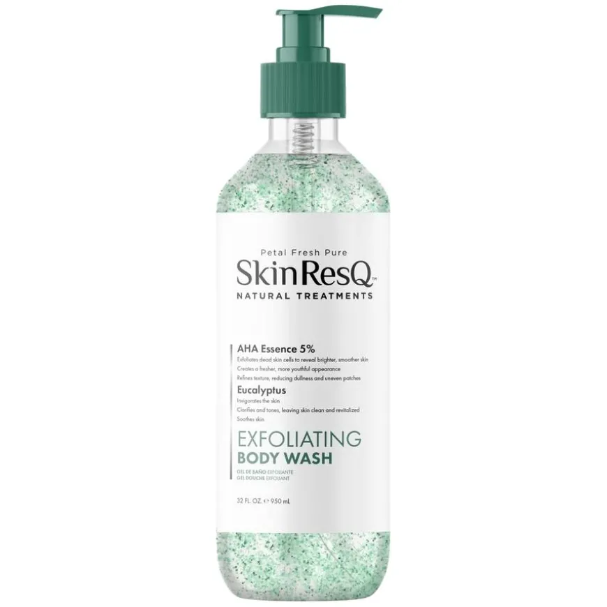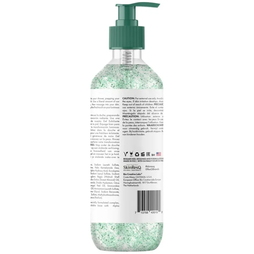 Skin ResQ Exfoliating Body Wash Eucalyptus er en eksfolierende kroppsvask med oppfriskende og fornyende effekt. Den gelbaserte formelen inneholder 5 % AHA Essence som skånsomt fjerner døde hudceller og forbedrer hudens struktur og glød. Eukalyptusekstrakt virker oppkvikkende og beroligende, og etterlater huden ren, frisk og balansert. Inneholder også valnøttskall og mandelolje som gir næring og mykhet. Passer for alle hudtyper som ønsker en jevnere, glattere og mer revitalisert hud.