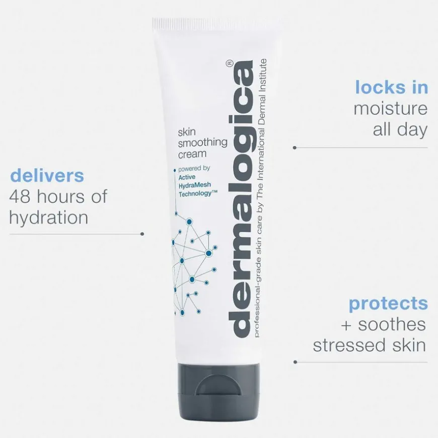 Skin Smoothing Cream er neste generasjons fuktighetskrem med Active HydraMeshTechnology™ som tilfører huden fuktighet i 48 timer, samtidig som den beskytter mot forurensning. Denne bestselgende fuktighetskremen inneholder et hyaluronsyrekompleks som jobber på cellenivået for å redusere fuktighetstap i huden i tillegg til at det tilfører rikelig med fukt. Den avanserte teknologien beskytter også hudens naturlige mikroflora. Produktet inneholder naturlige antioksidanter fra druekjernefrø, C vitamin og E vitamin. Kremen er vegansk og cruelty-free.