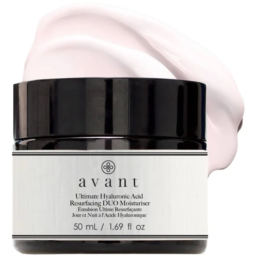 En av bestselgerne hos Avant, Ultimate Hyaluronic Acid Resurfacing DUO Moisturiser. En aldersbekjempende, fornyende krem, som er utviklet for dag- og nattbruk. Den kombinerer signaturingredienser for å lysne gusten hud og redusere synligheten av rynker og fine linjer.
