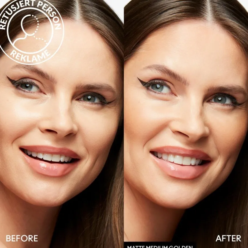 - Pudderet legger seg ikke i fine linjer, klumper ikke, og tåler svette, fuktighet og vann.