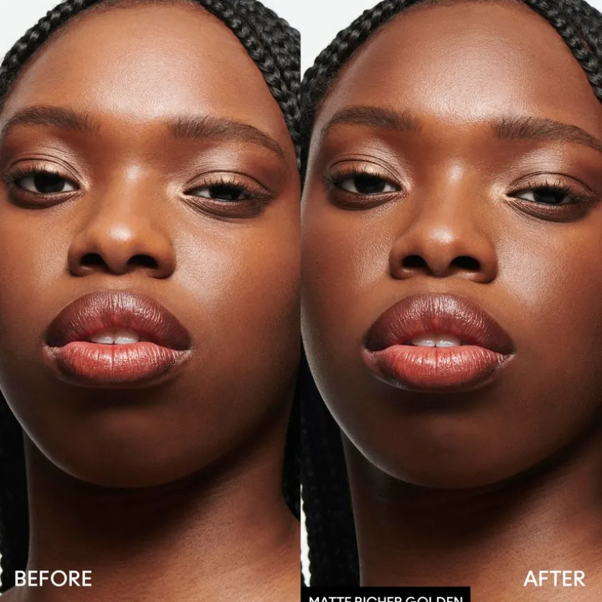 MAC Cosmetics Skinfinish Sunstruck Matte Bronzer er et mykt matt bronzingpudder som gir varme og dybde, tilgjengelig i flere fargeekte nyanser skapt av kunstnere. Tilfør huden varme og glød med MACs helt nye dimensjonalt strålende bronzing-pudder-tilgjengelig i fem ekte makeup-farger. Dette kremete pudderet er designet for å forbedre din naturlige hudtone, og inneholder dobbeltbehandlede pigmenter for en levende, naturlig finish. Den er fremstilt med merkets Marshmallow Cushion Blend for en silkemyk tekstur som alltid ser glatt og forfinet ut. Den holdbare sammensetningen sitter i opptil 24 timer og har en vannfast og svette- og fuktfast dekning. Forleng den sommerlige følelsen hele året med kunstnerens best bevarte hemmelighet for solkysset glød.