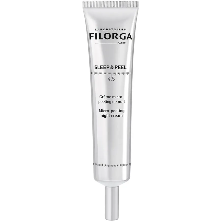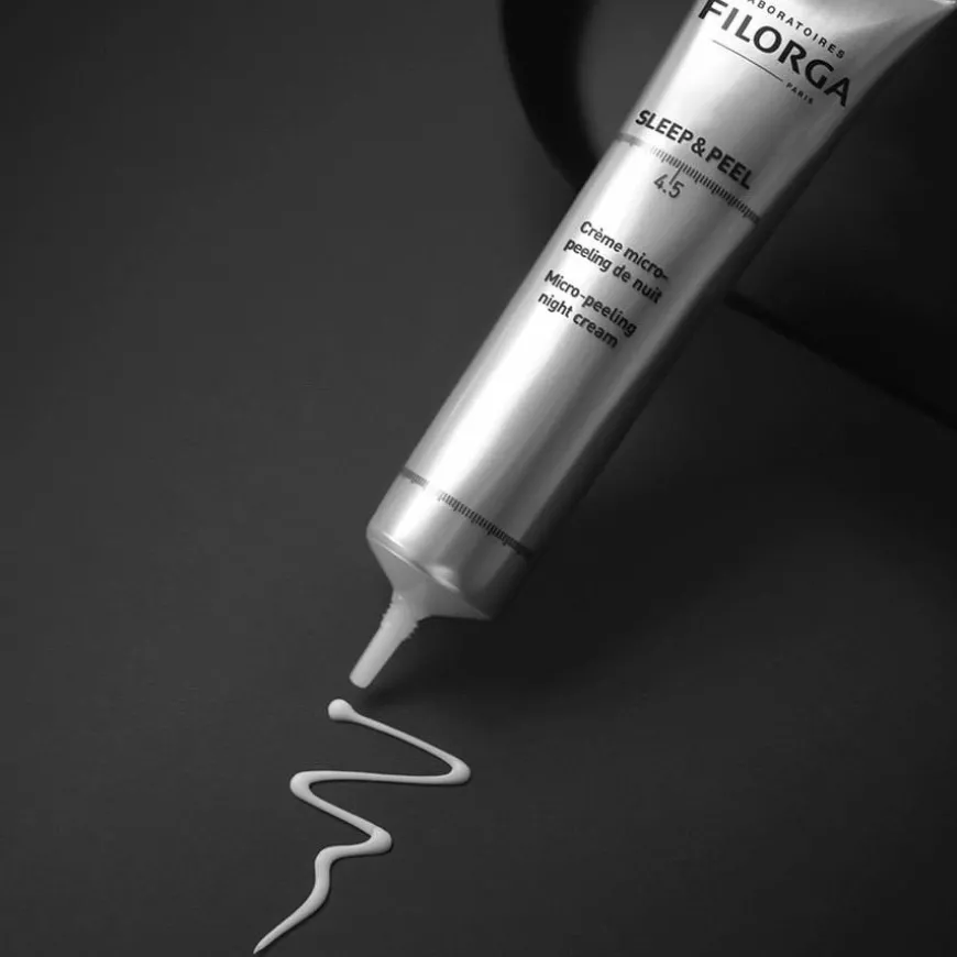 Sleep & Peel 4.5 er en micro-peeling nattkrem inspirert av profesjonelle peelinger, som gir en skånsom overflatebehandling.Denne eksfolierende nattkremen gir synlig resultat allerede etter første morgen! Våkne opp med glattere hud, mindre porer og en fantastisk glød. Med et hydroksysyrekompleks (AHA/BHA) med 4,5% konsentrasjon, og et beroligende ekstrakt av brunalge passer den også sensitiv hud.