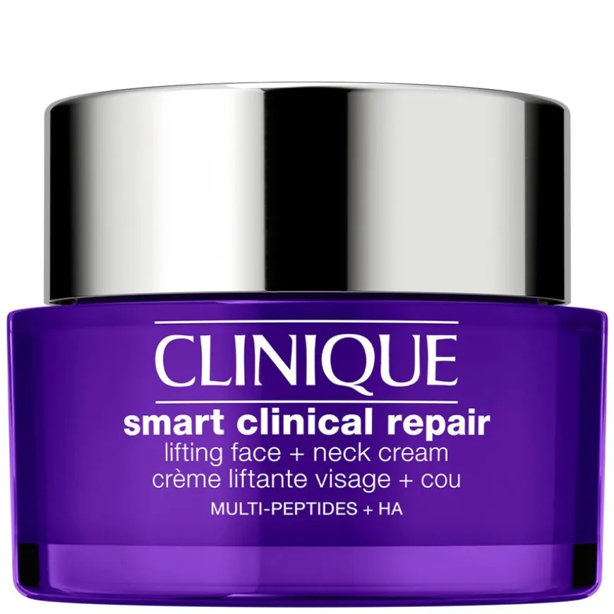 Smart Clinical Repair Lifting Face + Neck Cream er en luksuriøs anti-age krem for ansikt og hals, som klinisk dokumentert reduserer rynker og fine linjer, og gir huden et synlig løft samtidig som den glatter ut rynkete hud på halsen. Denne kremen er beriket med multipeptider som styrker huden og støtter den naturlige kollagenproduksjonen, noe som får huden til å se løftet ut og reduserer synligheten av rynker og fine linjer. Samtidig sørger hyaluronsyre, jojobaolje og sheasmør for øyeblikkelig og langvarig fuktighet, gir mer fylde, forbedrer elastisiteten og jevner ut fine tørrhetslinjer. Velegnet for alle hudtyper.