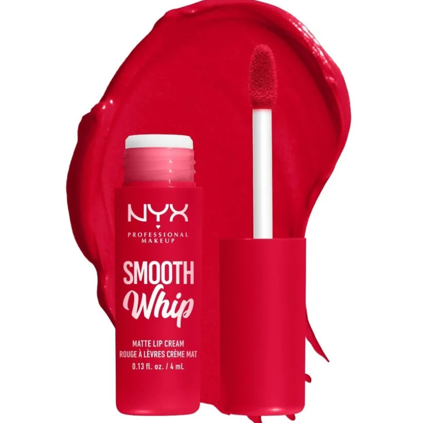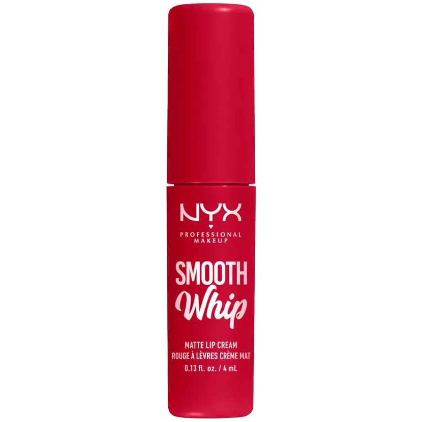 Skjem bort leppene med Smooth Whip Matte Lip Cream fra NYX Professional Makeup. Myke linjer. Myke lepper. Få et mykt og matt resultat i nude eller livlige nyanser – maksimalt fargeutbytte med ett enkelt strøk. Si farvel til ujevnheter og linjer – dette produktet gir leppene dine et glatt resultat: som et IRL utglattende filter! Formelen er beriket med shea- og kakaosmør og har en pisket konsistens som føles lett på leppene. Smooth Whip er designet med en applikator som glir lett på leppene og dekker dem med farge. Vegansk formel* *Uten ingredienser av animalsk opprinnelse.
