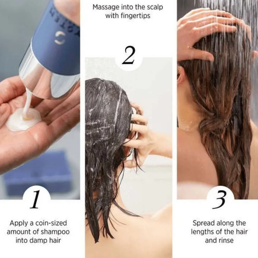 - Påfør en liten mengde shampoo i fuktig hår.