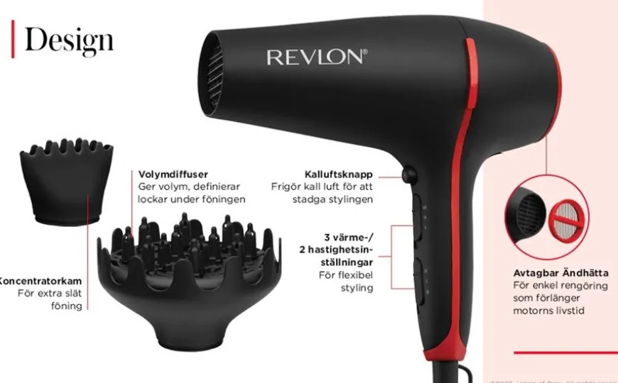 - 3 varme- og 2 hastighetsinnstillinger, samt en kaldluftfunksjon for fullstendig tørking og stylingfleksibilitet.