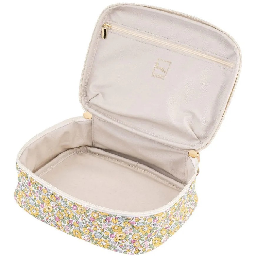 Soft Beauty Bag er en praktisk og stilfull sminkebag, laget av 100% bomull medBon Deps eksklusive Liberty-stoff. Bagen har et vannavstøtende fôr som beskytter sminken din, og er designet med en praktisk innvendig lomme for enkel organisering. Med et topphåndtak og en sikker glidelåslukking, er denne sminkebagen lett å bære med seg, og perfekt for både hjemmebruk og reiser.