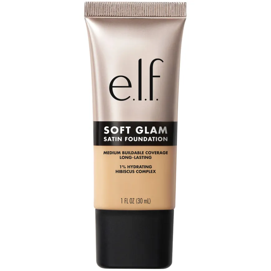 Soft Glam Satin Foundation gir den perfekte balansen mellom naturlig og glamorøs dekning. Den lette, pustende formelen gir middels, byggbar dekning med en satengfinish som føles behagelig hele dagen. Beriket med 1 % Hydrating Hibiscus Complex og fruktekstrakter fra granateple, blåbær og gojibær, tilfører den fuktighet og næring til huden uten å tette porene. Ikke-komedogen og egnet for tørr, fet og kombinert hud. Tilgjengelig i 36 nyanser for et bredt spekter av hudtoner. 100 % vegansk og Leaping Bunny-sertifisert.