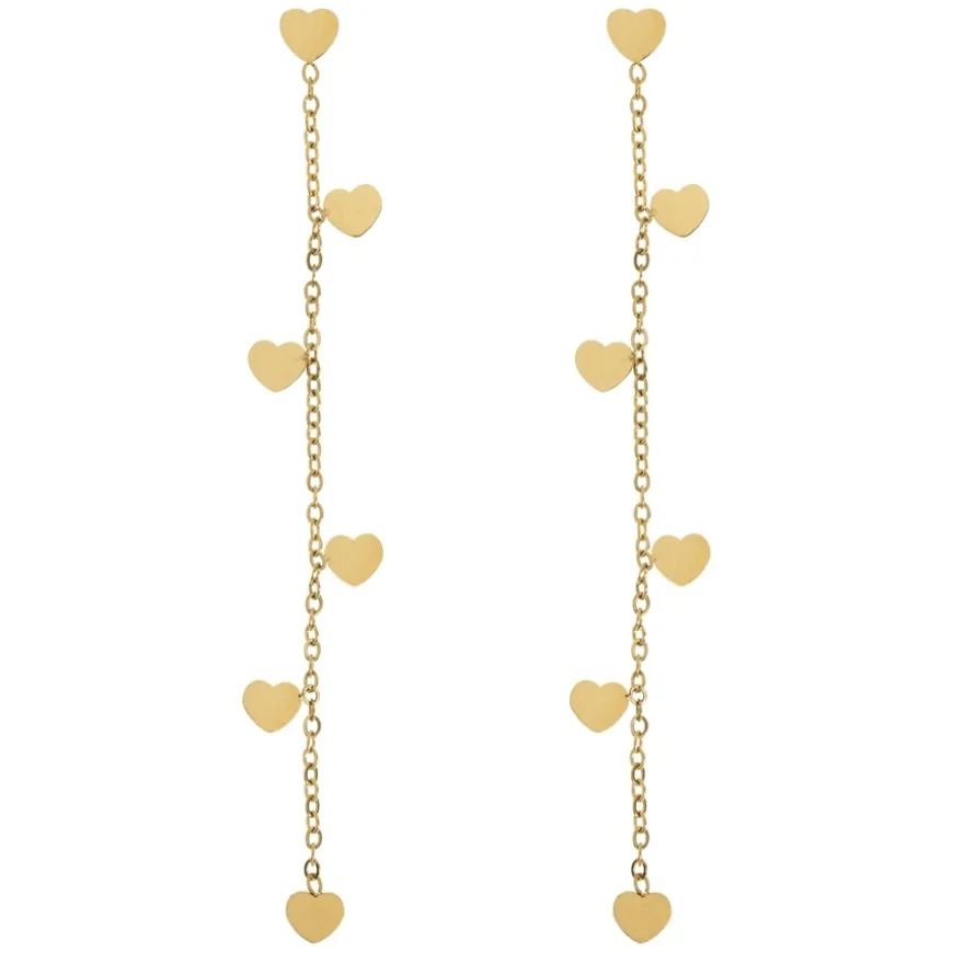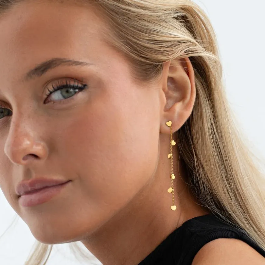 Solana Heart Chain Stud Earrings er et par elegante og enkle øredobber som løfter antrekket ditt på en sofistikert måte. Hver øredobb har en tynn kjede med små hjerter festet til en stud, noe som gir et delikat og lekent uttrykk. Perfekt for deg som ønsker et stilrent smykke med et romantisk preg.
