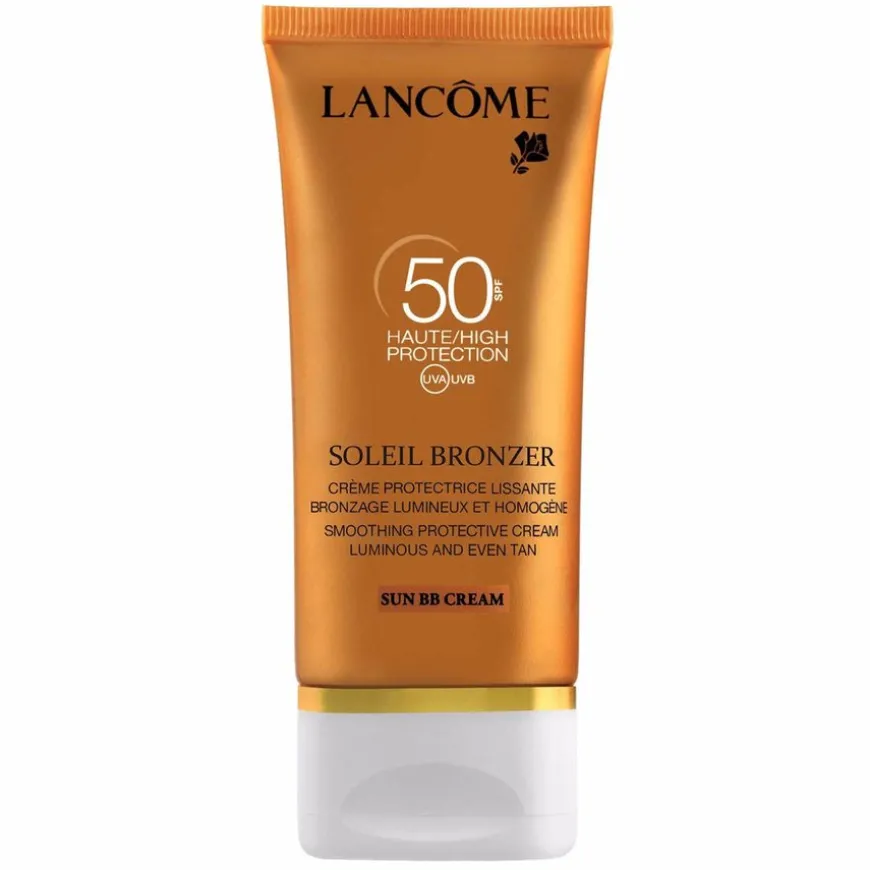 Lancôme Soleil Bronzer Sun Protection BB Cream SPF50 er en solkrem til ansiket som kombinerer den høye beskyttende effekten fra et avansert solbeskyttende produkt med en delikat tekstur med pigmenter, som optisk korrigerer fargeforskjeller. Huden får en vakker og naturlig gyllen farge med den flotteste glød og utstråling. BB-solkremen inneholder mexorylfiltre, som beskytter huden mot skadelige UVA-/UVB-stråler, samt E-vitamin, nærende oljer og fuktgivende hyaluronsyre.
