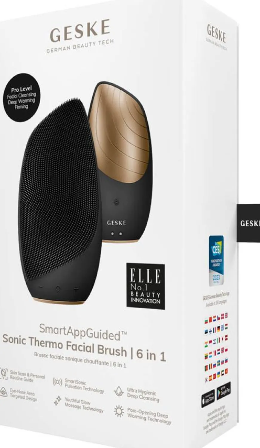Ett apparat for å stramme opp, tone, løfte, massere og rense? Er du usikker på om alt dette bare er en drøm? Det trenger du ikke – perfekt hud kan bli din virkelighet. Det kan i alle fall motegudene i ELLE Magazine skrive under på. ELLE har kåret GESKE til ELLE No.1 Beauty Innovation og har virkelig tro på GESKEs innovative teknologier. La den silkeglatte huden tale for seg selv – skaff deg din Sonic Thermo Facial Brush 6 in 1 nå!