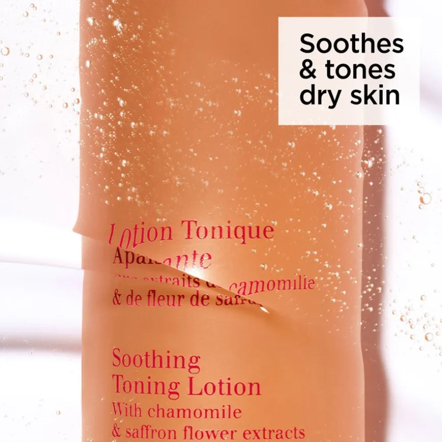 Soothing Toning Lotion er den perfekte toneren for å fjerne sminke fra svært tørr eller sensitiv hud. Soothing Toning Lotion er rik på økologisk kamilleekstrakt, valgt spesielt for å berolige og mykgjøre tørr hud. Denne formelen er også rik på Clarins’ Microbiota Complex, som kombinerer polyfenoler fra safranblomster og prebiotika for å bevare hudens naturlige balanse.