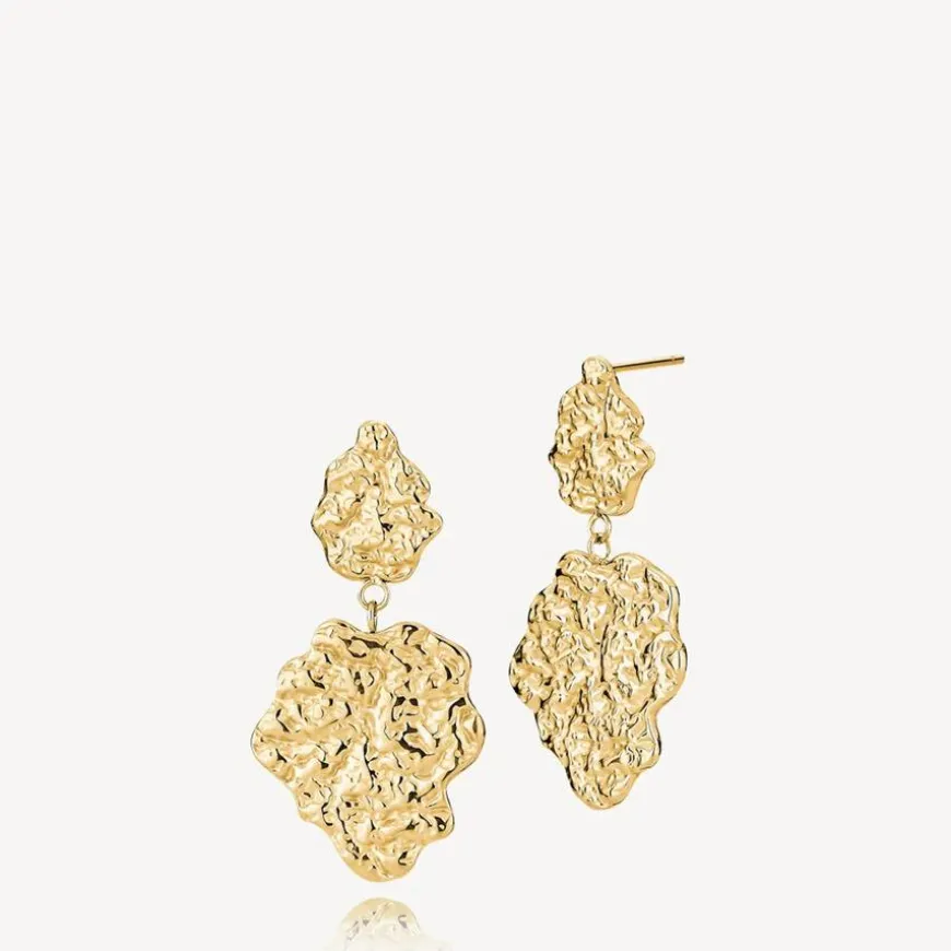 Sophia Earstuds i 18kt gullbelagt rustfritt stål, designet med en banket overflate for et trendy og rått uttrykk. Perfekte for å følge de nyeste trendene.