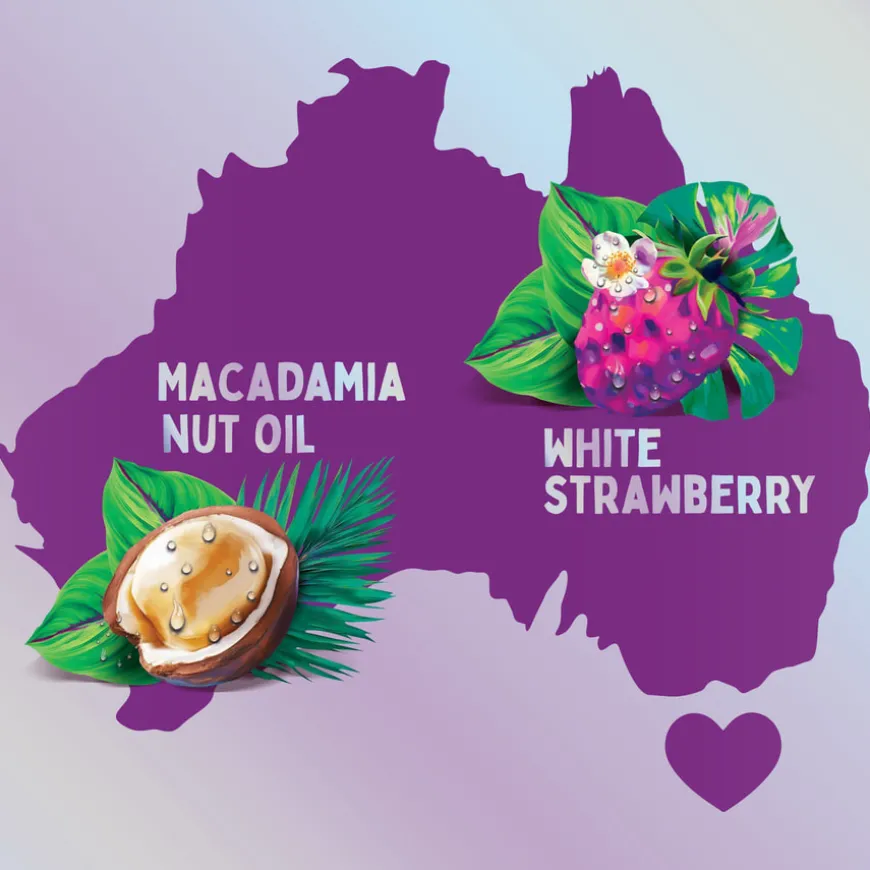 Aqua, Sodium Laureth Sulfate, Cocamidopropyl Betaine, Sodium Xylenesulfonate, Parfum, Sodium Chloride, Citric Acid, Sodium Benzoate, Sodium Citrate, Sodium Salicylate, Limonene, Guar Hydroxypropyltrimonium Chloride, Sodium Hydroxide, Tetrasodium EDTA, Linalool, Macadamia Ternifolia Seed Oil, Butylene Glycol, Fragaria Chiloensis Fruit Extract