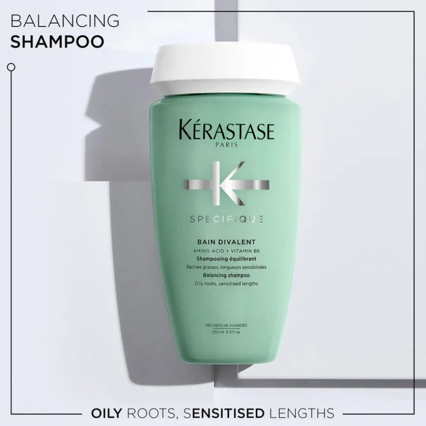 Specifiqué Divalent er en balanserende hårpleierutine fra Kérastase til fet hodebunn og tørre lengder. Serien har dobbeltvirkende effekt for å regulere talgsyklusen ved å rense hodebunnen i dybden og samtidig tilføre næring til hårfiberen. Balansert hodebunn er et økende fokus blant forbrukere og grunnlaget for vakkert hår, noe som gjør hodebunnspleie til et must-have.