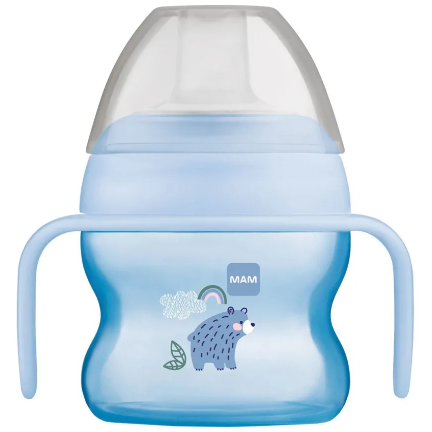 Starter Cup er en perfekt begynnerkopp for barn, fra MAM. Denne barnekoppen er liten og lett, med en smalere midtseksjon og antiglide-håndtak, for å gjøre det enkelt for små hender. Drikketuten er laget av myk silikon, og er sølefri.