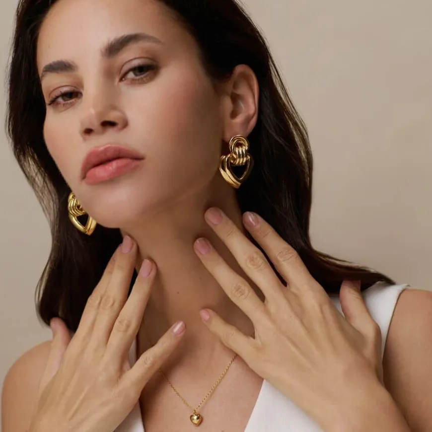 Gi antrekket ditt det lille ekstra med Statement Interlocking Textured Heart Earrings. Disse unike øredobbene har et sammenkoblet design med en teksturert hjerteform.