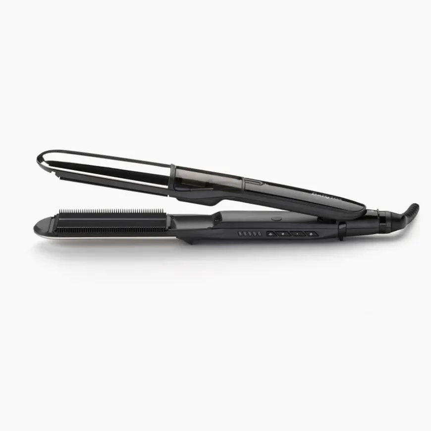BaByliss Steam Shine Styler er en profesjonell rettetang som frigjør kondisjonerende damp for å fukte og beskytte håret under styling. Denne teknologien bidrar til å opprettholde hårets naturlige fuktighet, redusere krus og etterlate håret ekstra skinnende og mykt.
