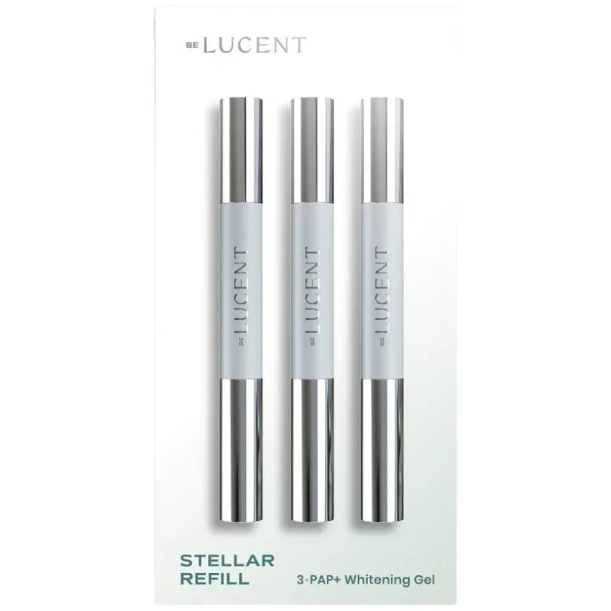 Stellar Refill er en oppfriskende og skånsom refillgel utviklet for bruk med Be Lucent Stellar Gentle Whitening Kit. Blekningsgelen inneholder PAP+, et effektivt og peroksidfritt alternativ til tradisjonelle tannblekingsmidler. PAP virker skånsomt på tennene og reduserer risikoen for ising og irritasjon. Formelen er beriket med hydroksyapatitt, et mineral som styrker emaljen og bidrar til å motvirke svekkelse som kan oppstå ved tannbleking. Gelen har en mild smak av peppermynte og inneholder blant annet glycerol, PVP og titanoksid for stabilitet og effekt. Refillen er perfekt for deg som allerede har startpakken og ønsker å vedlikeholde resultatene med en trygg og effektiv behandling.