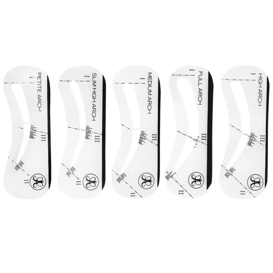5 Stencils er et sett bestående av 5 ulike typer øyenbrynsformer. Hver form er designet for å hjelpe deg med å oppnå perfekt balanserte og symmetriske bryn hver gang du former og tegner brynene dine. Med disse formene kan du skape den formen som passer ditt ansikt best, hver dag.