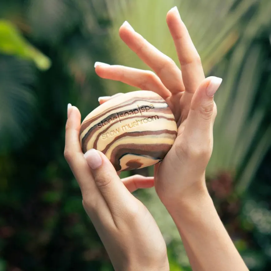 Stone Soap Snow Mushroom er en håndlaget såpe som kombinerer naturlige ingredienser for å gi huden optimal næring og pleie. Denne unike såpen inneholder håndplukket snøsopp, kjent for sine kollagenrike egenskaper som hjelper til med å redusere aldringstegn ved å stramme opp og fukte huden. Med en balansert blanding av kokosolje, riskliolje og sesamolje, etterlater den huden myk og glatt, uten å tørke den ut. Den friske duften av sitrongress gir en forfriskende følelse, mens de naturlige ingrediensene pleier huden på en skånsom måte. Produktet passer perfekt for de som ønsker en ren og naturlig hudpleie.