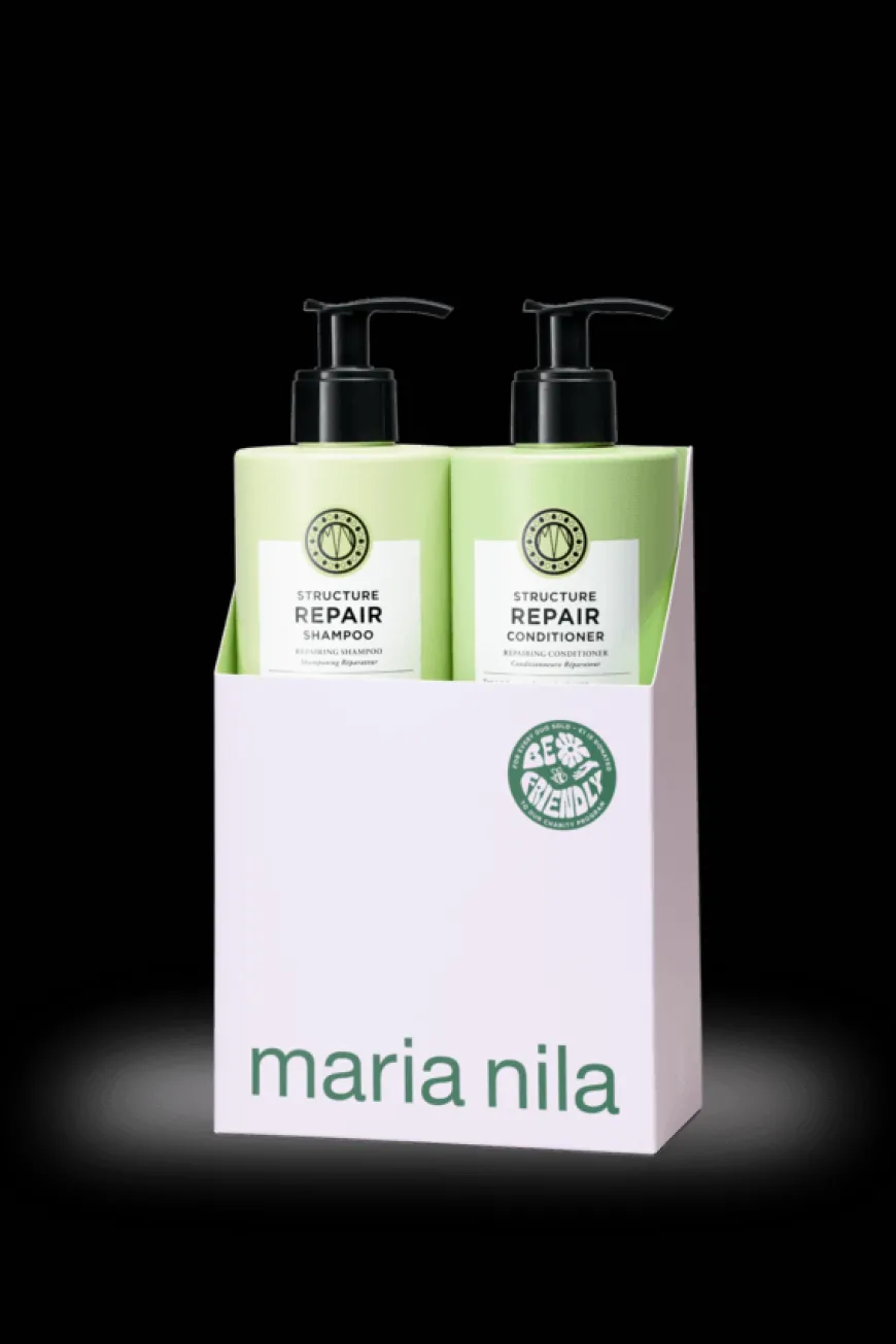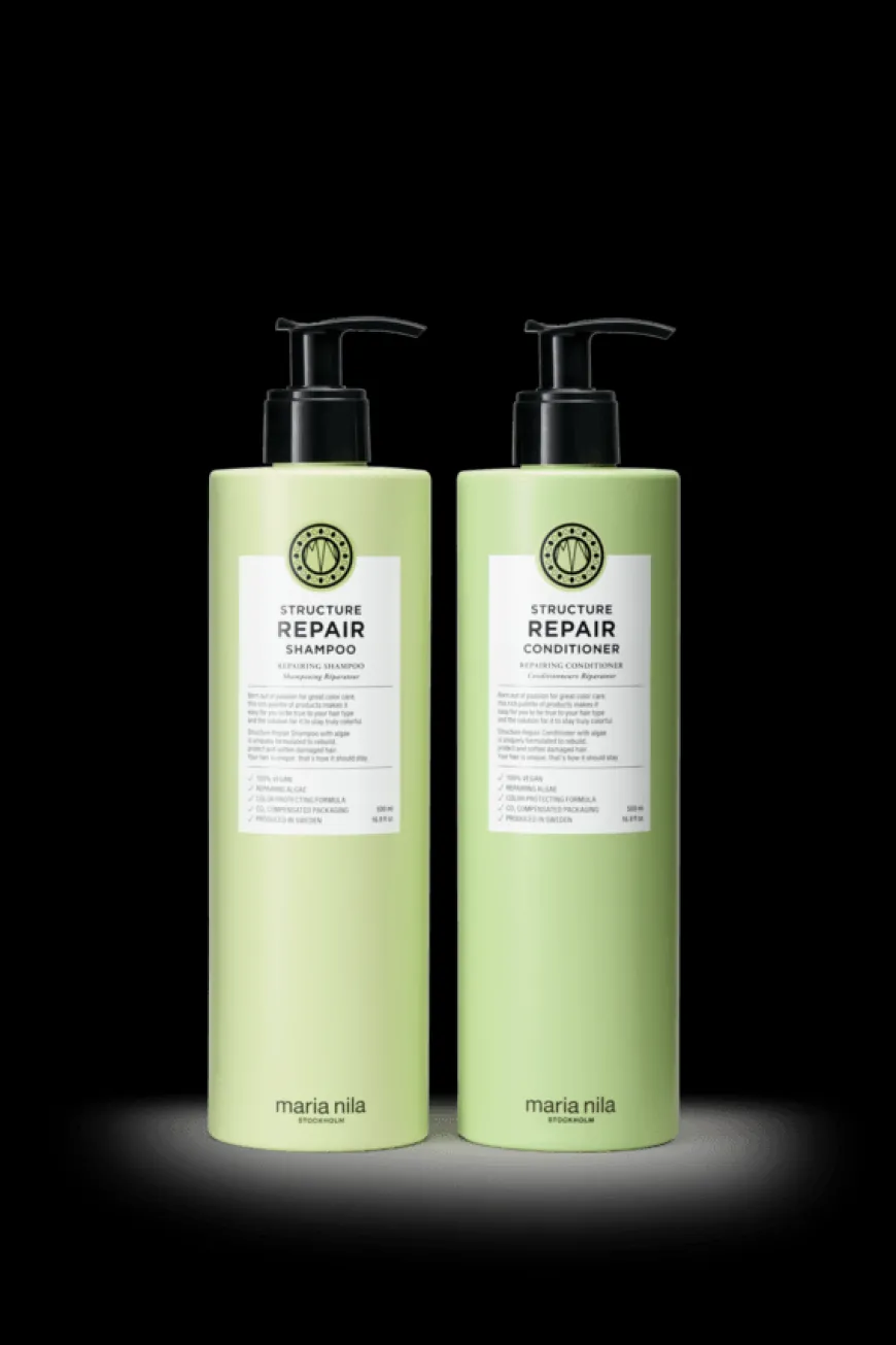 - Maria Nila Structure Repair Shampoo 500ml: Structure Repair Shampoo er en nærende og styrkende shampoo for skadet, tørt og behandlet hår. Inneholder reparerende algeekstrakt som gjenoppretter håret ditt og tilfører glans, vitalitet og mykhet.