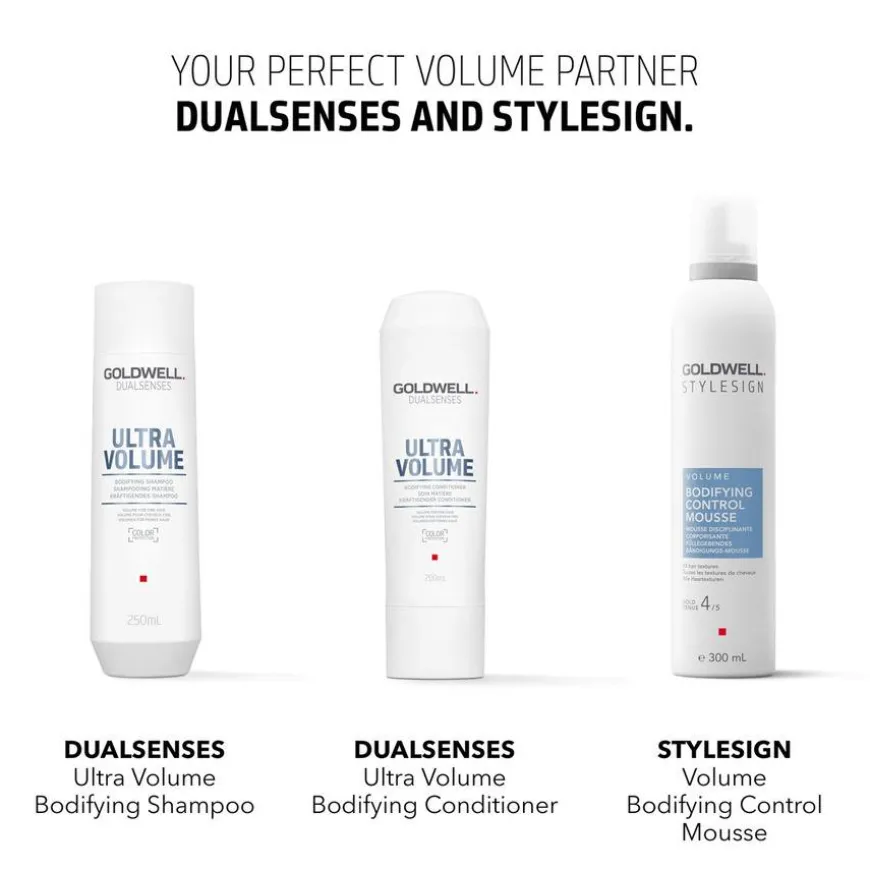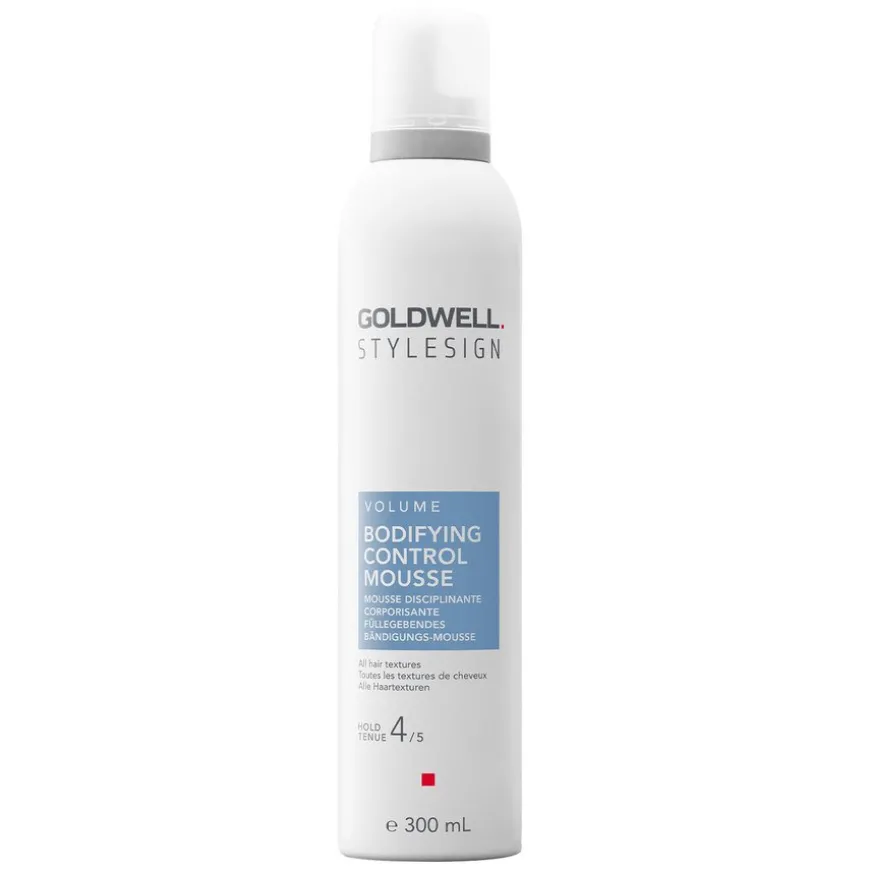 StyleSign Bodifying Control Mousse gir umiddelbart opptil 100 % mer holdbart volum og fylde under føning, beskytter mot varmeskader samtidig som den kontrollerer grovt og skadet hår. Den har en vegansk formel, er CO2-kompensert og dermatologisk testet. Holdfaktor 4/5 og glansnivå 1/3. For alle hårteksturer.