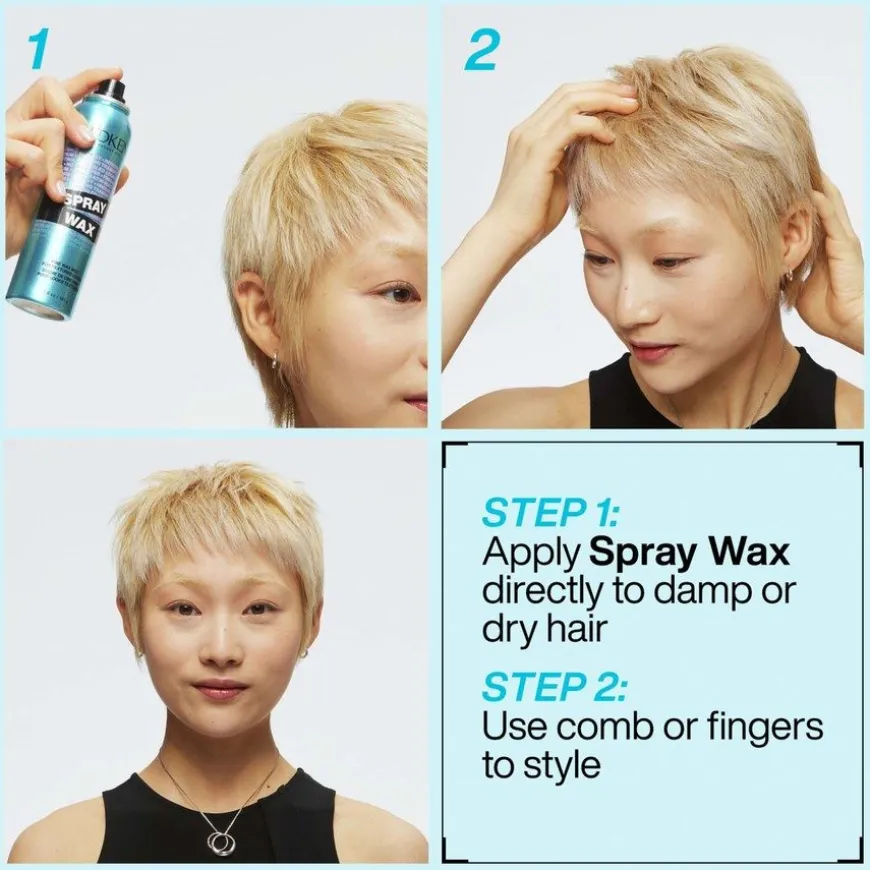 Spray Wax fra Redken er en usynlig hårspray med medium kontroll som gir varig hold for naturlig, enkelt utseende. Vokssprayen er lett å jobbe med, kontrollerer teksturerte frisyrer og etterlater håret med en naturlig finish. Den usynlige teksturiserende misten har en unik kombinasjon av hårfikserende ingredienser for en vokslignende finish.